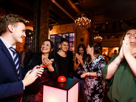 Kdo nejrychleji stiskne tlačítko, může odpovídat na otázky. Zábavná týmová hra založená na jednoduchém principu, který vychází ze známých televizních pořadů typu Co na to Češi. Dynamické otázky, logické úkoly, vizuální hádanky či hudební ukázky… prostě buďte rychlejší, hrajte a bavte se!
